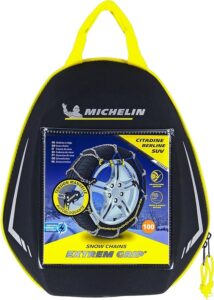 Cadenas de nieve metálicas Michelin Extrem Grip 100: la garantía de un viaje sin interrupciones. No dejes que la nieve interrumpa tus planes. Nuestras cadenas garantizan un viaje suave y seguro, sin importar el clima. Viaja sin parar.