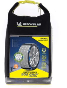 Flexibilidad para enfrentar el invierno: Nuestras cadenas de tela Michelin SOS Grip Evolution 9 se adaptan a tus necesidades, ofreciendo fácil instalación y un rendimiento sin igual. Adáptate al invierno con flexibilidad.